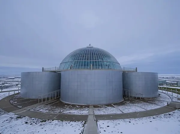 Fatti rapidi: A massive glass dome crowns a futuristic building perched 61 meters above sea level with panoramic views of Reykjavik and the surrounding wilderness. The dome houses a rotating water tank simulating Iceland's powerful glaciers and oceans, creating a climate-controlled marvel unlike anywhere else.