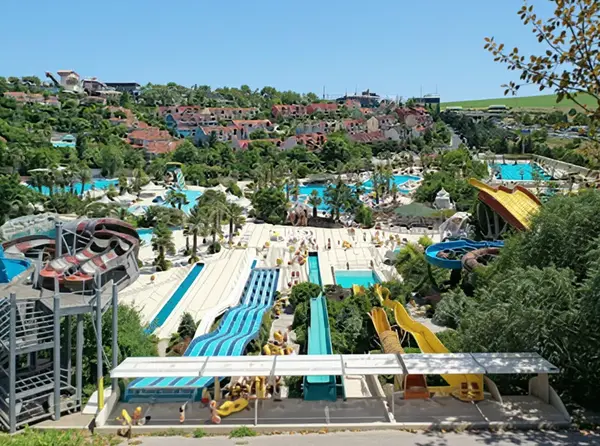 Korte feiten: Aqua Club Dolphin is a unique waterpark offering both fun and relaxation with pools, slides, and spa facilities. It’s nestled right by the sea, so swimmers get refreshing views alongside thrilling rides.