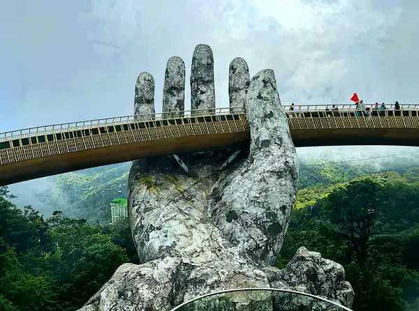 Destaques: Golden Bridge is visually stunning because the massive hands appear weathered and ancient, as if nature itself is holding the walkway. The perspective from the bridge offers panoramic vistas of the Ba Na Hills and lush forests below, making the experience almost surreal.